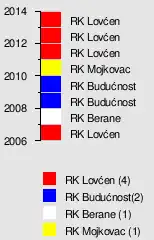 | RK Lovćen | 1 | 2 | 2 | 3 | 2 | 1 | 1 | 1 |