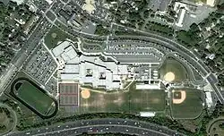 The school has baseball and softball fields to the east of the main building as well as Blazer Stadium which serves as the home of the school's football, soccer, field hockey, and lacrosse teams.