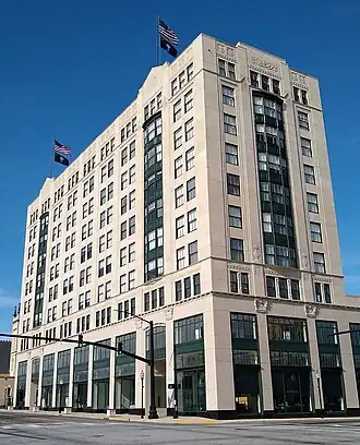 The Montgomery Building, listed on the National Register of Historic Places, is an iconic building located on Church Street in Spartanburg, Spartanburg County, South Carolina. It was built in 1924, and is a ten-story, nine-bay-wide, steel frame skyscraper faced in precast concrete. It originally housed the offices of textile companies, cotton brokers, and factories. The building also contained a theatre/auditorium space, a radio and television station. The Montgomery Building was the tallest building in Spartanburg until the 1950s.[2][3] In 2016, a developer announced a $29 million plan to renovate the building for mixed-use to include apartments, offices and retail.[4] Restoration began in Spring 2017 and was completed in December 2018.[5]