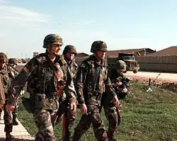 Meigs received his PhD in history from Wisconsin in 1982 before reporting to 2nd Armored Cavalry Regiment as its executive officer. In 1984, Meigs commanded the 1st Squadron, 1st Armored Cavalry Regiment. Following a stint at the National War College as an Army Fellow, he worked as a strategic planner on the Joint Staff in Washington, D.C. for three years. In 1988–1989, he attended MIT Seminar XXI.[1] Returning to Germany, he assumed command of the 2nd Brigade, 1st Armored Division on 26 September 1990, and commanded it through Operation Desert Storm. He subsequently commanded the 7th Army Training Command in Grafenwoehr and served as Chief of Staff of V Corps and Deputy Chief of Staff for Operations of the United States Army, Europe, and 7th Army. Meigs commanded the 3rd Infantry Division from July 1995 until its reflagging as the 1st Infantry Division in February 1996. In October, he deployed with the 1st Infantry Division to Bosnia, serving nine months in command of NATO's Multi-National Division (North) in Operations Joint Endeavor and Joint Guard.