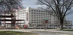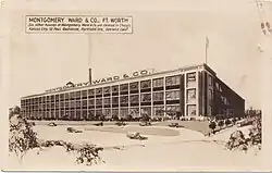 In 1928, Montgomery Ward located its regional retail and mail order warehouse on West 7th Street, just across the Trinity River from Downtown Fort Worth. This was one of nine regional centers constructed in the U.S. between 1926 and 1929. The building was constructed in 1928 by Thos. S. Byrne, Ltd. as a major regional retail and mail order warehouse for the retail company Montgomery Ward. The building originally allowed for trains to come in between its two towers to be unloaded. The original front façade finished the creation of an eight-story U-shaped structure.