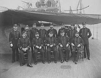 Suvsequently, Sicard alternated command duty afloat with ordnance duty in Washington, D.C., and New York City.[1] He was promoted to captain on 7 August 1881,[3] and served as chief of the U.S. Navy Bureau of Ordnance from 1881 to 1890.[1] He was promoted to commodore on 10 July 1894,[3] to rear admiral on 6 April 1897,[3][6] taking command of the North Atlantic Squadron. He was forced to relinquish his command at the outbreak of the Spanish–American War in April 1898 due to ill health. Upon his partial recovery, he was placed in charge of the Board of Strategy and took an important part in guiding the conduct of the war.[1]