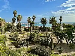 The top of the hill can be reached using the Funicular de Montjuïc, a funicular railway that operates as part of the Barcelona Metro, and then the Montjuïc Cable Car, a gondola lift. On the eastern slope is the Miramar terminal of the Port Vell Aerial Tramway connecting Montjuïc with Barceloneta on the other side of Port Vell. Part of the slopes are covered with a well attended park and gardens. The hill is often used for amateur cycling.