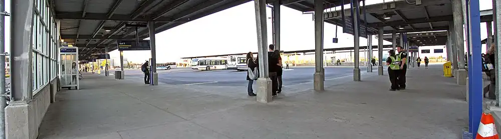 A large bus terminus with 10 platforms and an indoor waiting area adjoins the station. The building, which is operated by the ARTM features an ARTM ticket counter as well as a convenience store and a coffee shop. In addition, the station has parking for 1342 cars – 644 free outdoor park and ride spaces and 698 paying spaces (54 outdoor, 644 indoor).[6] The indoor spaces cost $7 a day or $80 per month (if a user purchases a monthly parking pass). All bus traffic enters and leaves on boulevard de l'Avenir, while all parking spaces are accessed via rue Lucien Paiement.
