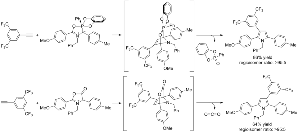 - ^ a b St. Cyr, Daniel J.; Arndtsen, Bruce A. (2007-10-01). "A New Use of Wittig-Type Reagents as 1,3-Dipolar Cycloaddition Precursors and in Pyrrole Synthesis". Journal of the American Chemical Society. 129 (41): 12366–12367. doi:10.1021/ja074330w. ISSN 0002-7863. PMID 17880218.