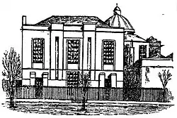 The new Montrose Academy was founded in 1815. It was partly funded by public subscription funds of £1350, adding to £1000 from Montrose Town Council.[31] Built close to the site of the former grammar school, the foundation stone was laid on 27 February or 15 March 1815 by Mrs Ford of Finhaven.[31][32] It existed alongside other schools including White's Free School and the local trades school, and had the largest attendance.[27]