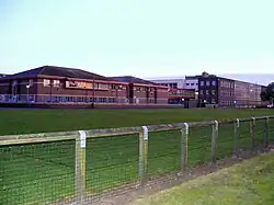 An endowment in 1891 provided facilities for a new science and art school.[47] In 1898, after the closure of Dorward's Seminary, its building was renovated, extended and added to Montrose Academy.[48] This provided a new assembly hall, and allowed space to complete a new gymnasium, which at the time was one of the largest in Scotland.[48] Tuition of the classics continued into the later nineteenth and early twentieth centuries.[1] The curriculum expanded at the beginning of the twentieth century to include more scientific subject matter.[49] By 1900 gymnastics and swimming were introduced to the curriculum.[50] In 1895, the school was described as having two separate entrances for boys and girls. The classrooms were heated with open fires during the winter and the walls were decorated with pictures, photographs and maps gifted by former pupils.[8] There was also a preparatory school attached - Montrose Academy Elementary School, which existed until the 1970s.[51][52] In 1932 the local Townhead School, which taught commercial and technical subjects, became part of Montrose Academy.[53] It was fully amalgamated by the 1950s.[54]