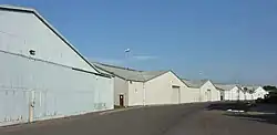 To the immediate south of the museum stand three aircraft hangars which are believed to be the oldest example of their type in the world. The hangars were built at the end of 1913 and first used in early 1914 to house No. 2 Squadron when they moved to the airfield from Upper Dysart. Their design was based on Indian Army Sheds modified by Major Burke to house aircraft and were pre-fabricated in Glasgow before being transported to Montrose. The buildings were constructed of wood with corrugated iron roofs and each one had two gabled openings. The hangars were built in a curve following the path of railway line which used to be at the rear of the buildings.