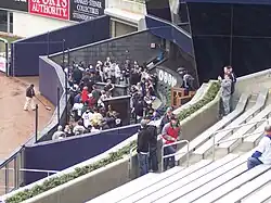When Yankee Stadium was remodeled from 1974 to 1975, the center field fence was moved in to 417 feet (127 m). The flag pole and monuments were relocated from center field to an enclosed area, formerly occupied by bleachers, beyond left-center. As this fenced-in area between the two bullpens gathered additional plaques on its wall, it began to be referred to as "Monument Park". It was inaccessible to fans.[9] With the formalization of the area as an official Monument Park as the stadium reopened in 1976, new plaques were announced for managers Joe McCarthy and Casey Stengel, as well as a plaque memorializing Pope Paul VI's 1965 visit to Yankee Stadium.[10]