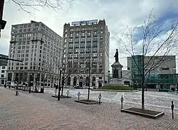 Monument Square (formerly Market Square[1] or Haymarket Square)[2] is a town square in downtown Portland, Maine, about halfway between the East Bayside and Old Port neighborhoods. One Monument Square and One City Center are among the buildings on the square itself, while the Time and Temperature Building, Fidelity Trust Building and the main branch of the Portland Public Library are on Congress Street, across from the square.