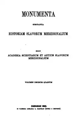 Although some of the monuments (documents, statutes) have experienced modern editions in the past two decades, both of the series contain valuable and indispensable sources for the study of Croatian and South Slavic history.[1]