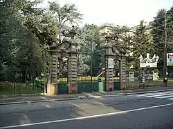 Some civil architecture has been lost, such as the sumptuous Villa Bossi-Gabardi[21] on Via Mameli, designed by Duilio Torres and built after 1925. All that remained of that villa after its demolition in 1969 was the gate, which is now the Park's entrance to Art Nouveau. The monument inside the park is evidence of another elegant building that has been lost: the Rena house in Garibaldi Square, designed by Silvio Gambini and built between 1906 and 1907. Also lost is Antonio Ottolini's villa, on San Michele Street, by Camillo Crespi Balbi and of no less beauty than the other two, by Ernesto and Enrico Ottolini.[22]