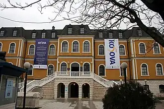 Belediya building was built by the end of the 18th century as the municipality for Ottoman authorities in Prizren.[40] It is located in the historical zone of the city. It is a unique building incorporated perfectly in the surrounding area and built in a human scale.[40] In 1911 Sultan Rashady was settled in Belediye.[40] He called for fair judge in the name of God, and restated that “all citizens living under his dynasty should be happy”.[40] The building was restored and adapted to the first Regional Centre of Cultural Heritage in Balkans, used as a training center for professionals and interns of the Cultural Heritage.[40]