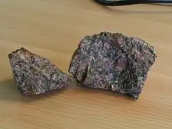 Granitoids in the Gabal El-Urf area in eastern Egypt consist of a monzogranite pluton, belonging to the Younger Granite province, emplaced in granodioritic rocks. The monzogranites here are depleted in aluminum, magnesium, calcium, and titanium, while being enriched with rubidium, niobium, zirconium, and yttrium. They are similar to other granites that were emplaced by crustal extension, and are chemically consistent with fractional crystallization. The monozogranite is moderately radioactive, with much of the uranium and thorium incorporated into accessory minerals such as zircon, xenotime, and allanite.[4] The source of the monzogranite was likely partial melting in the Neoproterozoic, caused by either an orogeny, or magma from a volcanic arc.[5]