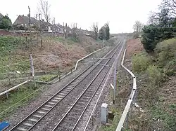 The station is located in Moore cutting on the south side of the road (which is now Runcorn Road) which loops through Moore village passing both this station and Daresbury, also in the village. The road crossed the railway on an over-bridge, with road access down to the station building on the down, western, side of the tracks. In 1865 there was at least one platform at the station.[3][4]