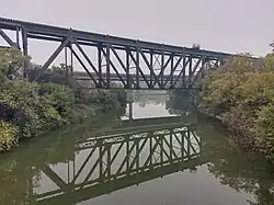 There are two main tributaries of the Moose Jaw River. Avonlea Creek[11] begins near the Piapot Cree First Nation 75G and flows in a north-west direction paralleling Moose Jaw River until near the village of Avonlea where it turns north and meets Moose Jaw River about 6.4 kilometres (4.0 mi) south-west of Rouleau. Along the course of Avonlea Creek is Watson Reservoir,[12] which is about 6.4 kilometres (4.0 mi) south-east of the town of Avonlea. At the north end of the reservoir is Dunnet Regional Park.[13]