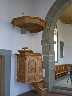 The Romanesque village church was built on top of at least one earlier church. The choir was rebuilt around 1520–25.