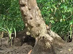 Mora oleifera (syn. Mora megistosperma) is a species of rainforest tree in the bean family Fabaceae, cassia subfamily Caesalpinioideae. It is commonly called mora or mangle nato, and is found in Nicaragua, Costa Rica, Panama, Colombia, and Ecuador.[1] It grows 45 metres (148 ft) in height and up to 4 m (13 ft) diameter at breast height. It is noted for producing the largest seeds of any dicot plant (bean-shaped, typical of the family); and up to 18 cm (7 in) long by 15 cm (6 in) wide,[2] and up to 10 cm (4 in) thick.[3] and can weigh up to 1 kg (2.2 lb),[4][5] and is exceeded only by Lodoicea maldivica and Cocos nucifera. This seed is in a single-seeded legume which develops from a tiny flower only 1 mm in width. These white flowers are in little spikes about 12 cm (5 in) long. The leaves are paripinnate with just two pairs of ovate or oblong leaflets, each leaflet up to 18 cm (7 in) long.[6] The wood is very heavy and rich in tannins.[7]