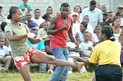 There is only one other known African combat game that uses similar kicking techniques to moraingy: engolo, which is played in Angola.[2]
