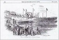 The contractor switched to two 12-hour shifts and had a workforce of around 300 navvies.[15] It was reported at the board meeting held on 2 April 1852, that although the track was half-finished a strike within the workforce had provoked a serious disturbance.[15] There were two stories in circulation regarding the incident. The first of these was that Irish navvies had come onto the job undercutting the locals' wages and the other was that the contractor, who was from England, employed English labour and it was they who objected to the Irish.[12][16] The outcome was that a clash of some sort had taken place and that four of the instigators were arrested and sentenced to various periods of hard labour—a fifth person was to be sent to the Court of Judiciary for trial after assaulting the sheriff.[17] The result of all this was that the Morayshire Railway was ordered to pay for ten additional police constables to regulate the workforce.[16]