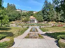 The Morcom Rose Garden (formerly the Morcom Amphitheater of Roses) is located in a residential neighborhood (the Rose Garden neighborhood[1]) in Oakland, California, near the Piedmont border. The street address is 700 Jean St., Oakland, CA 94610.