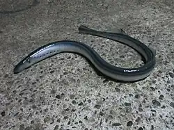 Mordacia lapicida, also known as the Chilean lamprey, is a species of southern topeyed lamprey endemic to southern Chile, where it can be found in riverine and marine habitats. This species is anadromous. This parasitic lamprey can reach a length of 54 centimetres (21 in) SL. Ammocoetes and adults of this species are found in rivers, and occur in fine sand along river banks.[3] The life cycle of a Mordacia lapicida is divided into three life stages: freshwater rearing, an ocean parasite and an adult spawning stage.[4] Once in the adult stage, individuals migrate into marine waters where they attack and attach themselves to marine fishes.[5] For this species, metamorphosis occurs during August and March.[6]