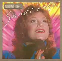 More Than Wonderful is a live album by gospel singer Sandi Patti issued in 1983 on Impact Records.[2] The album reached No. 2 on the Billboard Top Christian Albums chart.[3] The track "More Than Wonderful" would win many accolades including a Grammy Award for Best Gospel Performance by a Duo or Group at the 26th Grammy Awards, winning both Patti and Larnelle Harris their first Grammys together and a Dove Award for Song of the Year for its writer Lanny Wolfe and the album would win Inspirational Album of the Year and Patti won both Female Vocalist and Artist of the Year at the 15th GMA Dove Awards in 1984. In 1985, the track "Upon This Rock" wins Song of the Year, given to its writers Gloria Gaither and Dony McGuire at the 16th GMA Dove Awards. The album was certified Gold in 1985 and Platinum in 1990 by the Recording Industry Association of America. In 1990, More Than Wonderful was re-issued on Word Records.