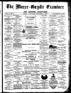 It then changed its title to the Moree Examiner and General Advertiser on 5 September 1899.[3] It continued under that title until 3 September 1901 when it changed its title to the Moree Gwydir Examiner and General Advertiser on 7 September 1901 (absorbing the Moree News).[4]