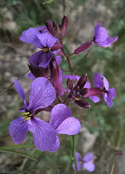 Moricandia arvensis, the purple mistress, is a species of flowering plant in the family Brassicaceae.[2] It has a broadly western Mediterranean distribution, from the Canary Islands to northern Africa including Mauritania and Chad, the Iberian Peninsula, Italy and as far as Greece, and has been introduced to France, Corsica, and Sardinia.[1] It has an intermediate C3–C4 carbon fixation system,[3] known as C2 photosynthesis.[4]