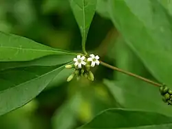 Morinda royoc, commonly known as redgal, yawweed or cheese shrub, is a species of flowering plant in the family coffee family. It is native to Central America, South America, southern Florida, and the Islands of the Caribbean. It is a vine or sprawling shrub found in sandy or rocky coastal areas.[2]