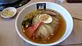 Morioka reimen (Japanese: 盛岡冷麵) is a local dish of Morioka, Iwate Prefecture. It is a cold noodle dish and one of the three great noodles of Morioka, along with Morioka jajamen and Wanko soba. It is known for its chewy noodles, rich chilled broth, and toppings of kimchi.[1] It is based on the Korean dish naengmyeon.