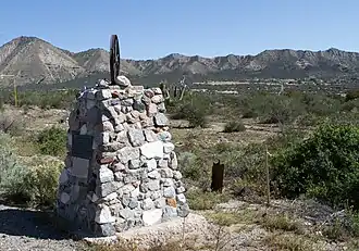 The Mormon Trail Monument was designated a California Historic Landmark (No.577). The Monument is to remember the 500 Mormon pioneers came to the San Bernardino Valley in June 1851. The Monument is near Phelan, California in San Bernardino County, California. The Monument was built in 1937 and is on California State Route 138, 3.6 Miles West of Interstate 15. In 1857 about half the Mormons were told to return to Utah during the Mormon War, also called the Utah War.[1][2][3][4][5][6] the Mormon War,[7] or the Mormon Rebellion[8][9][10][11]