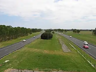 Plans for the southern section as "Mornington Peninsula By-pass Road" had been made as far back as 1966, between Nepean Highway in Dromana and Eastbourne Road at Rosebud.[6] It was built in small successive sections, starting at Nepean Highway at Dromana in late 1971[7] eventually to Jetty Road at Rosebud South in 1975.[8] Another single-carriageway section between Dromana and the Nepean Highway at Mount Martha opened in 1984,[9] later duplicated in 1989.[10] The last extension between Mount Martha and Moorooduc South linking to Moorooduc Highway was opened in 1993[11] and finally duplicated in 1994.[12]