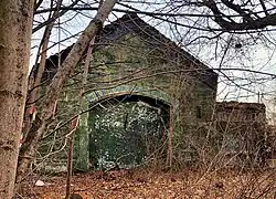 The New Haven Railroad had two stations serving the Morris Park area. Westchester station was located about 1⁄4 mile (0.40 km) to the south of the proposed station site at Eastchester Road, while the Morris Park station was located further south at the corner of Sacket and Paulding Avenues. A large freight yard was located on the south side of the tracks from Eastchester Road to Pelham Parkway.[3] New station buildings at both locations were designed by Cass Gilbert in 1908. The Morris Park station building survives; the new Westchester station (along with several others on the line) was never built.[4][5][6]