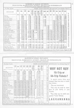 - ^ a b c d e f g h i j k l m n o p q r s t u v Erie Lackawanna Railway Company (April 27, 1969). Timetable #2, New York and Scranton Divisions.