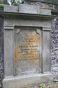 Morrison's Academy owes its foundation to Thomas Morison (also spelled Morrison). Born in 1761 in the village of Muthill; his mother belonged to Crieff. Morison trained as a stonemason and, after working some years in Auchterarder, he moved to Edinburgh and set up his own business. He made his fortune as the builder of a substantial part of the city's beautiful Georgian New Town (the sections north of Queen Street).