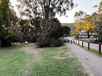 Site of the Morses Creek riots on the bank of the Ovens River at Bright (photographed 2025)