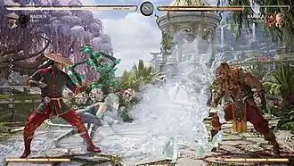 Fatal Blows, first introduced in Mortal Kombat 11, make a return. Like before, these can be triggered when a player's health drops below 30%, but this time they have the player and his Kameo Fighter delivering an attack in tandem. Additionally, the most significant attacks performed during the Fatal Blow are highlighted with effects like those seen in Mortal Kombat X's X-Ray moves.[7] Also returning is the airborne combo system seen in Mortal Kombat: Armageddon and the action spin-off Mortal Kombat: Shaolin Monks.[8]