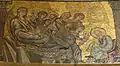 Noah and the Animals Enter the Ark | Double scene, showing a certain modernity in the animals. Ponticelli attributed it to a 1483–1499 intervention by Alesso Baldovinetti, inspired by Paolo Uccello's frescoes Scenes from the Life of Noah in the Chiostro Verde of Santa Maria Novella. Roberto Longhi instead argued the mosaic was earlier than the fresco, with the latter drawing on the former. Soulier noted Egyptian or Syriac influence. |