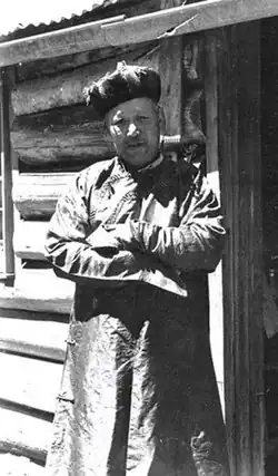 Bill then built himself a substantial log hut he named "Moscow Villa" which was completed in January 1942, on the day the Battle of Moscow was won.[15] Bill used local wood to build the hut and hand split the palings. Initially it had an iron chimney which was later replaced in 1975 by large one made of local stone. There was also a large bushfire dugout in the nearby bush. Bill lived in Moscow Villa during the summer months and in winter returned to his family in Ensay.[7]