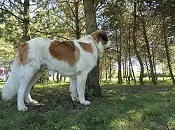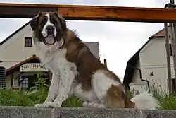 The Moscow watchdog (Russian: московская сторожевая, tr. Moskovskaya Storozhevaya) is a guard dog developed in the former Soviet Union, now Russia. It descends from crosses between the St. Bernard, the Caucasian Shepherd Dog and the Russian Pinto Hound.[1] It contains the physical size, attractiveness and intelligence of a St. Bernard and the awareness and assertive traits of a Caucasian Shepherd Dog.[2]