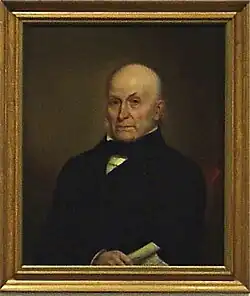 In February 1846, Billings spent a good deal of time working in Washington, D.C. There, he painted portraits of various figures of political importance, most notably Dolley Madison and John Quincy Adams. The portrait of Adams is noted for its lack of the severity of expression with which Adams is often depicted, capturing what Adams himself called "the true portraiture of the heart".[2] The Adams portrait is among the works in the permanent collection of Thiel College in Greenville, Pennsylvania. The portrait of Dolley Madison was lost sometime in the late 1920s, and remains missing to this day.