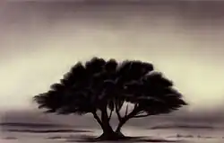 Kashi is a contemporary pantheist that his painting study field is based on views and imagery from nature. His paintings include fields, trees and entanglement, landscape and wide open space that try to express a place of which time stops, which is timeless and space less. Kashi's paintings are not created as a single painting but are created as a series of paintings. Every painting stands by itself and in every series there's a slow and research like attendance of the chosen subject. This kind of method of work allows Kashi to investigate, analyze and accuracy.[6][7]