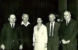 In 1970–1971, Sanbar served as acting minister of commerce and industry in Israel's fifteenth government headed by Golda Meir, acting for Minister Sapir who remained active in his simultaneous appointment as Minister of Finance. Sanbar was made Sapir's “special advisor” and carried all ministerial authority.[54][55][56] In this capacity, he was charged with coordinating the government efforts preventing prices spiral and inflation, triggered by security threats that forced further taxation.[57] Sanbar orchestrated the "package deal" signed with the Histadrut, allowing increased taxation alongside wage growth, supported by the industry's willingness to absorb growing costs of production.[58][59]