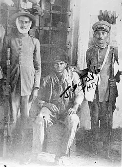 On June 13, Lampião and his gang reached Sítio Saco, where he sent a note demanding 400 réis in money to spare the city, a demand rejected by the mayor. The attack on Mossoró began at 4 p.m., with the gang leader dividing his cangaceiros into three groups, each targeting a different location: the first attacked the mayor's house; the second invaded and attacked the Mossoró railway station; and the third targeted what is now the São Sebastião Cemetery. An hour later, the gang retreated, leaving behind Colchete (killed during the confrontation) and Jararaca, who was wounded, captured, and killed days later.[23] Jararaca was buried in the same cemetery attacked by the gang and later became a figure of local reverence among the people of Mossoró.[17][22]