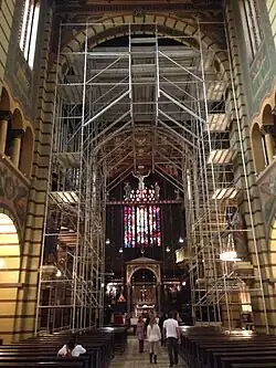 Between 2011 and 2013, the 12 images of the apostles, the chapel of the Blessed Sacrament, the side chapels and the organ with 6,000 pipes, which was installed in 1954 during the celebrations of São Paulo's fourth centenary, were restored. The six panels in the chancel depicting scenes from the life of Mary, the sacred sculptures and the images of St. Benedict and St. Scholastica, sculpted in 1650 by Agostinho de Jesus, were also restored. In 2016, the Crucified Christ, made of cedar by José Pereira Mutas in 1777, was restored after being damaged by pollution and grease from people's hands. The wall where the sculpture is located was also recovered.[15][16][17][18]