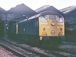 In 1987 the depot had an allocation of Classes 08, 20 and 37 locomotives, and the depot had an Anvil and Hammer logo.[2] Classes 26, 27 and 47 were also usually stabled at the depot.[3]