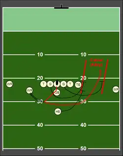 While there are different rules regarding motion, most mandate that no more than one player may be in motion at the time of the snap,[1] and the player must not be an offensive lineman (typically, the player in motion is a wide receiver or running back).[2] Additionally, the NFL (professional), NCAA (college), and NFHSAA (high school) require that they be moving laterally or backwards; they are not allowed to be moving towards the line of scrimmage when the ball is snapped.[3] The Canadian Football League allows for motion towards the line of scrimmage at the time of the snap,[4] as did the Arena Football League.[5] The Indoor Football League allows two offensive players to engage in forward motion.[6]