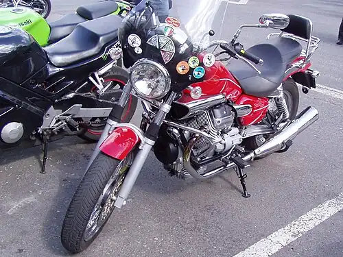 The origin of the Nevada is the V35 Florida.[2][3] It was developed as a cheap motorcycle with a displacement of 350 cm3. The basic version had no extras. However, these could be added at an additional cost.