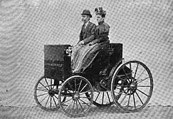 Charles Brady King intended to enter a "horseless carriage" in the 1895 Times-Herald race, but wrote to Adams that although he intended to enter a motocycle with four wheels and a 4-horsepower 100-pound engine, it wasn't quite ready and he would have to withdraw.[11] His motocycle could carry four persons, but for the race there would have been only two in the vehicle to reduce the weight and gain speed. His lightweight motocycle came in at 675 pounds, could seat four people plus cargo, and would probably sell for about $600 in a large quantity production.[11] His motocycle dream, however, did not flourish and was realized by Ford and Olds instead.[11][12]